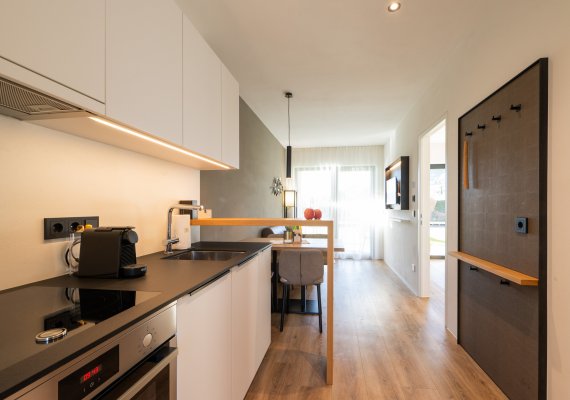 Auf 35 m² Wohnfläche erwartet Sie ein liebevoll gestalteter Wohnbereich sowie eine überdachte Terrasse mit 12 m² die zum Verweilen im Freien einlädt.