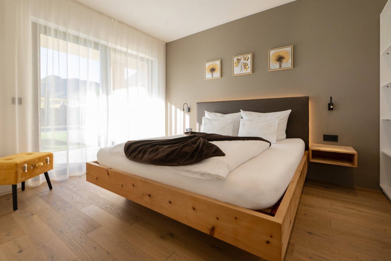 - Schlafzimmer mit Zirbenholz und hochwertigem Holzboden