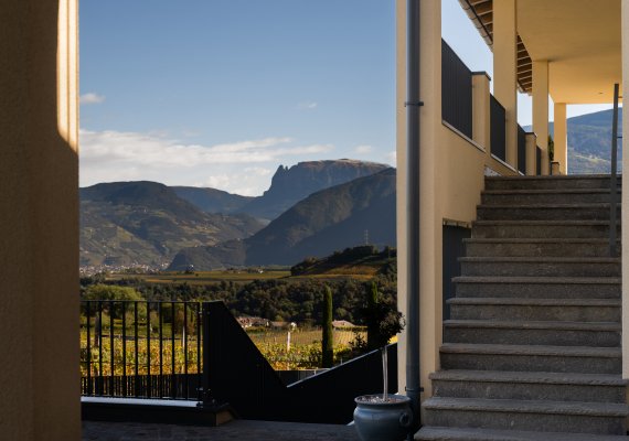 Ein besonderes Highlight ist die großzügige Sonnenterrasse mit den Blick auf die Dolomiten.