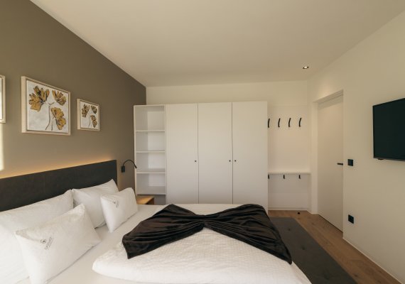 - Schlafzimmer mit Zirbenholz und hochwertigem Holzboden