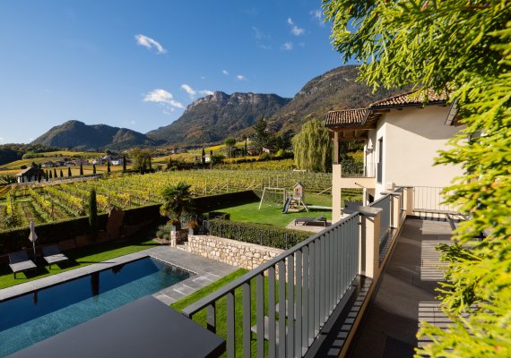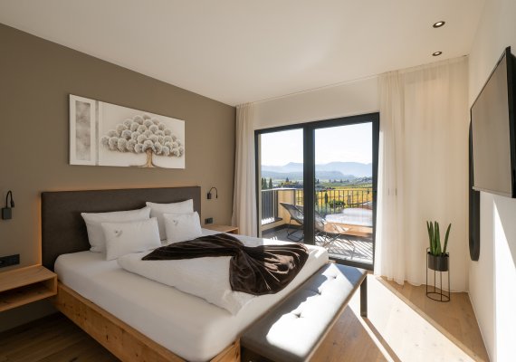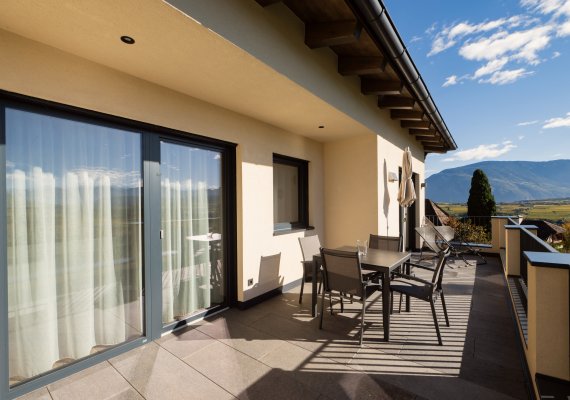 Ein besonderes Highlight ist die großzügige Sonnenterrasse mit den Blick auf die Dolomiten.