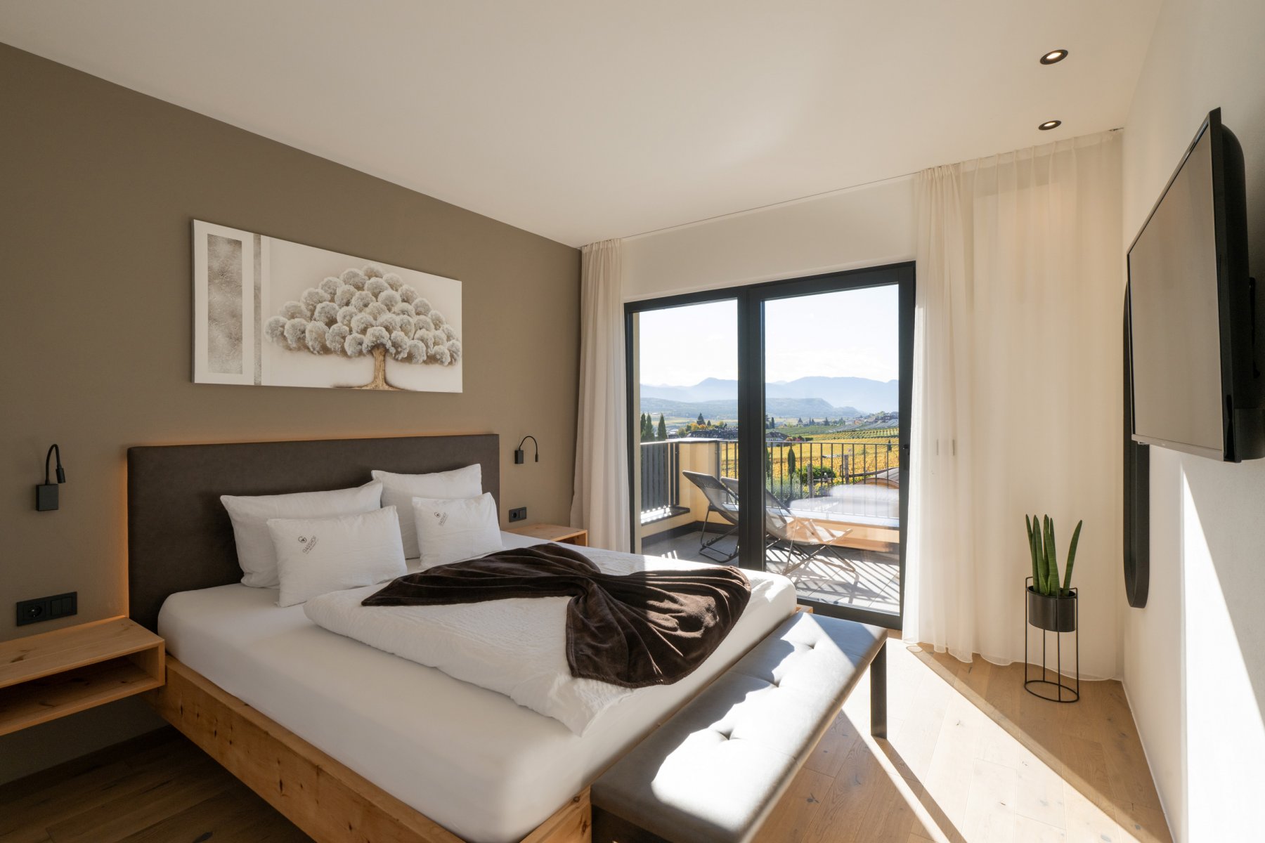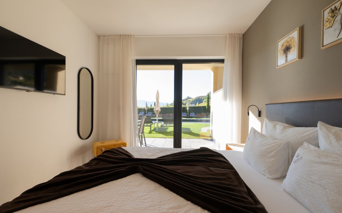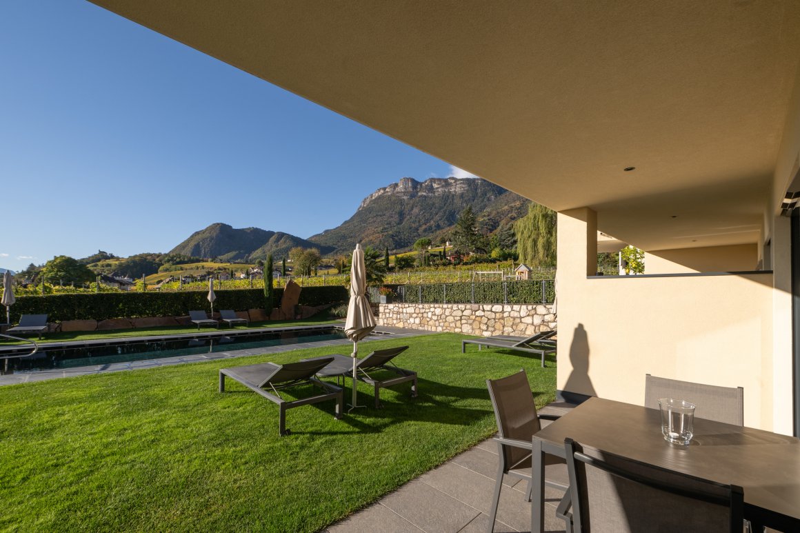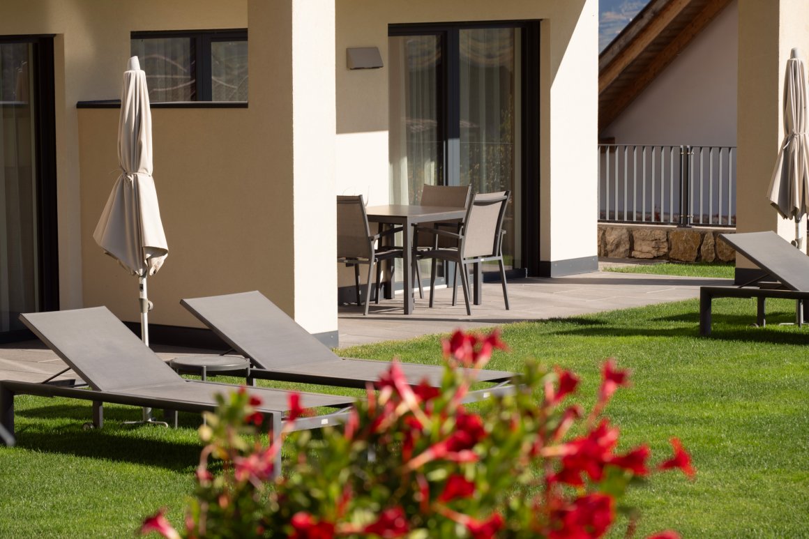 L‘appartamento Alma per 2 persone con ingresso indipendente al piano terra è il posto ideale per rilassarsi. Con vista panoramica, superficie abitabile di 35 m², terrazza coperta di 12 m² e dotato di: