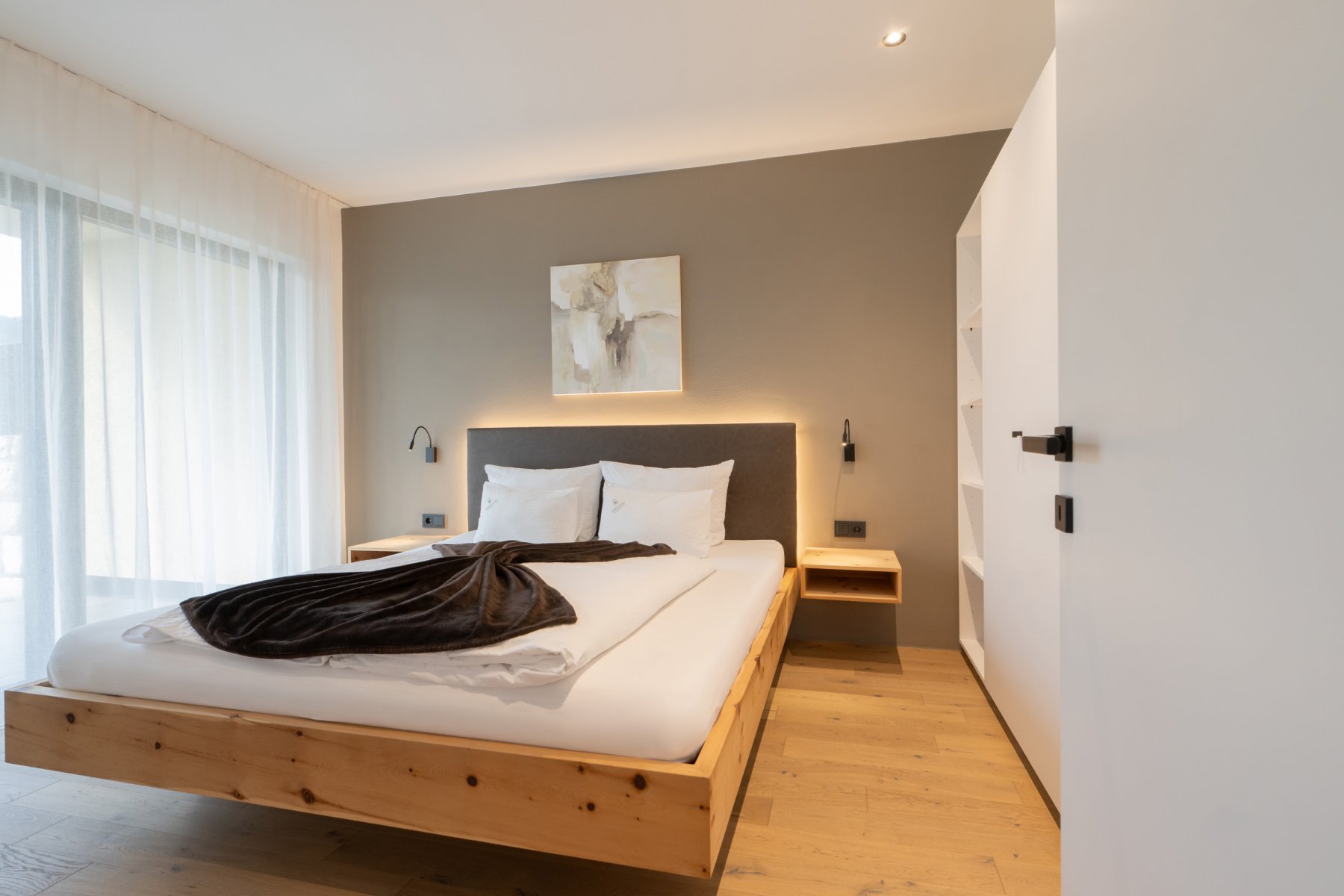- Camera da letto doppia in cirmolo con pavimento in legno